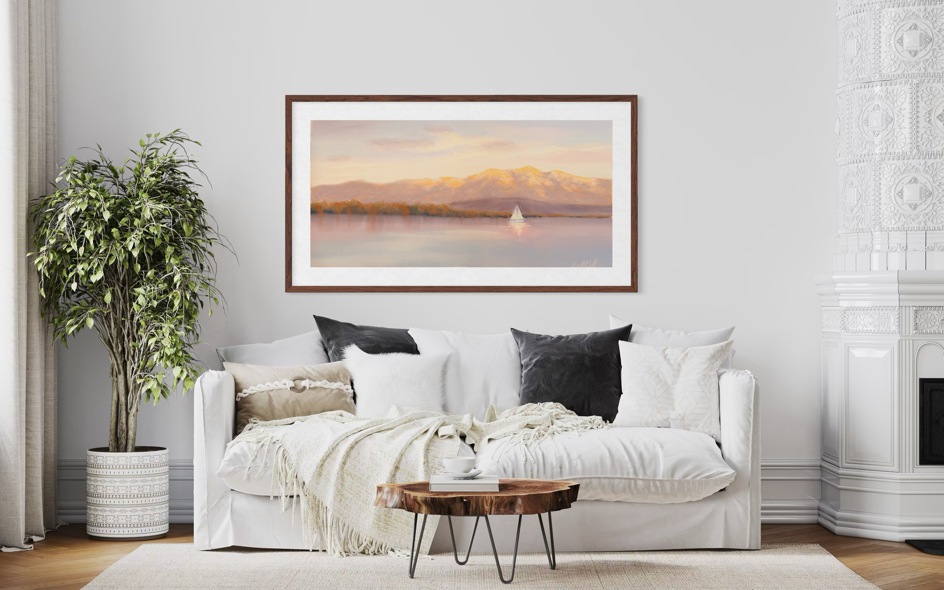 This collection celebrates the atmospheric beauty of the Olympic Mountains and Puget Sound and captures the region’s shifting light, coastal weather, and expansive horizons through richly layered color and expressive mark-making